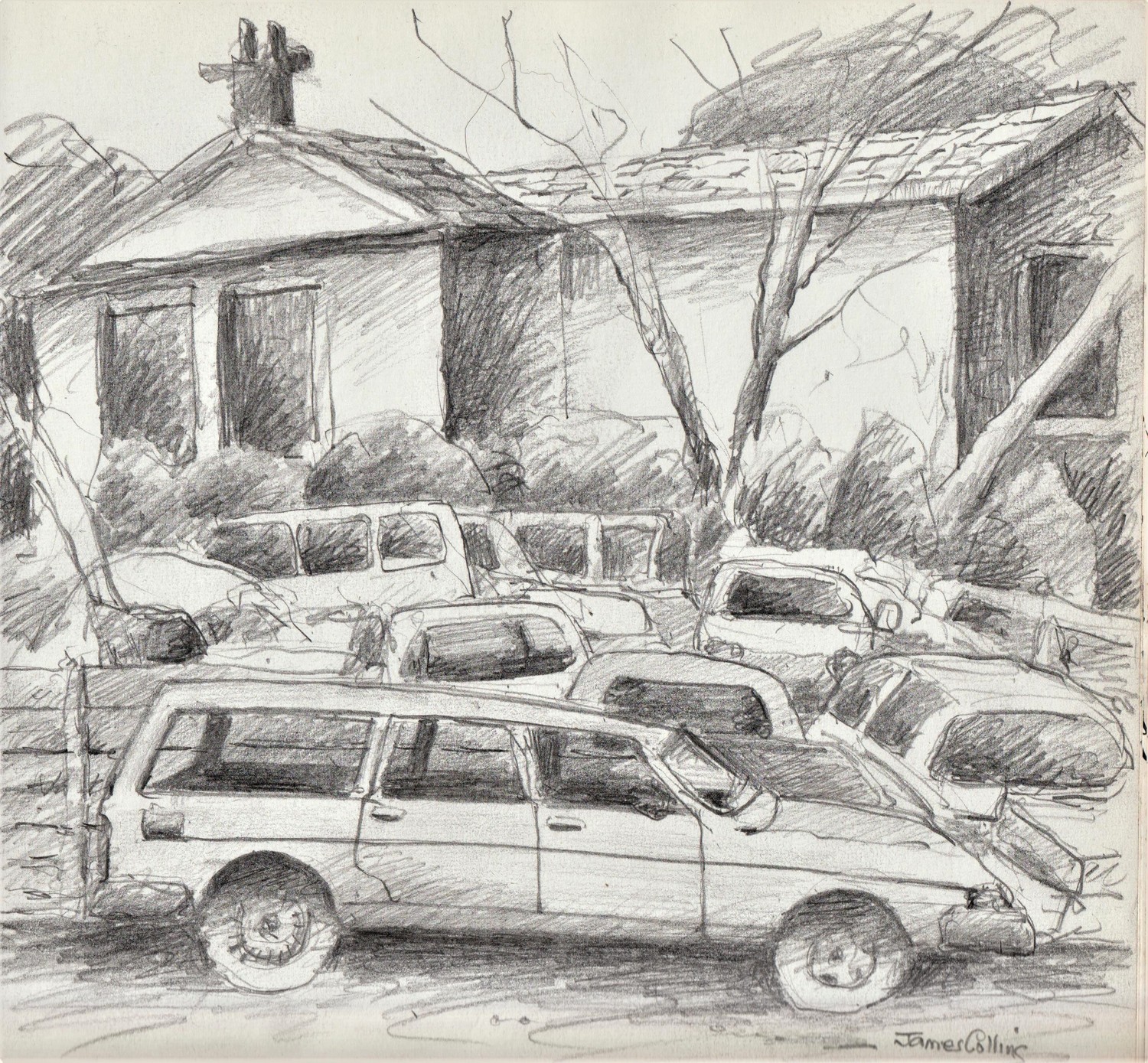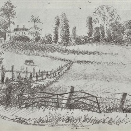 Pencil drawings of Boats, Houses and Landscapes