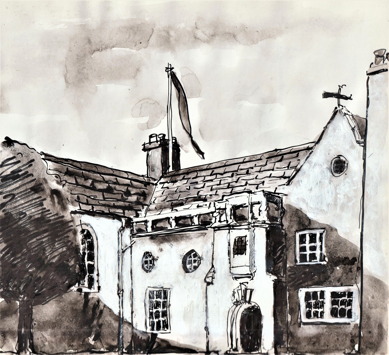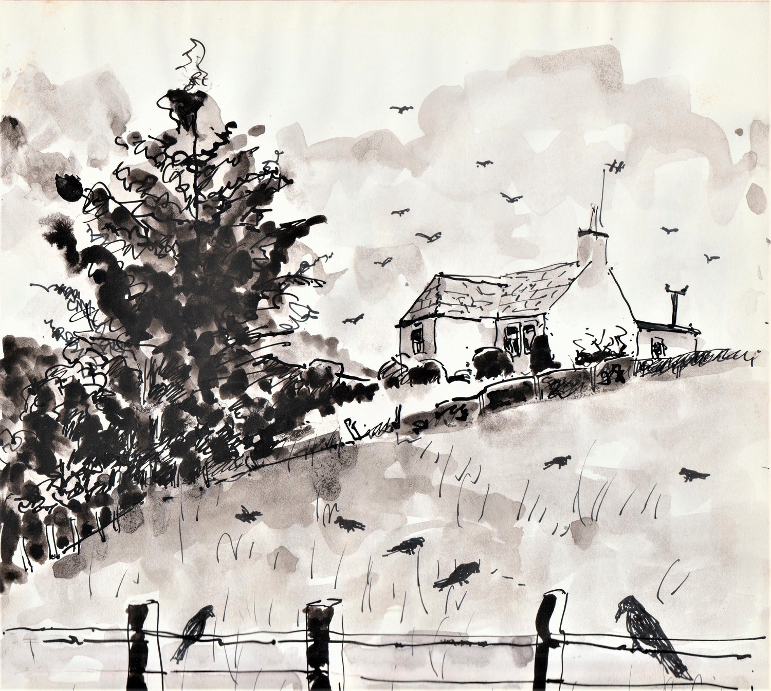 Craigroy near Dallas, Moray. Pen and wash.